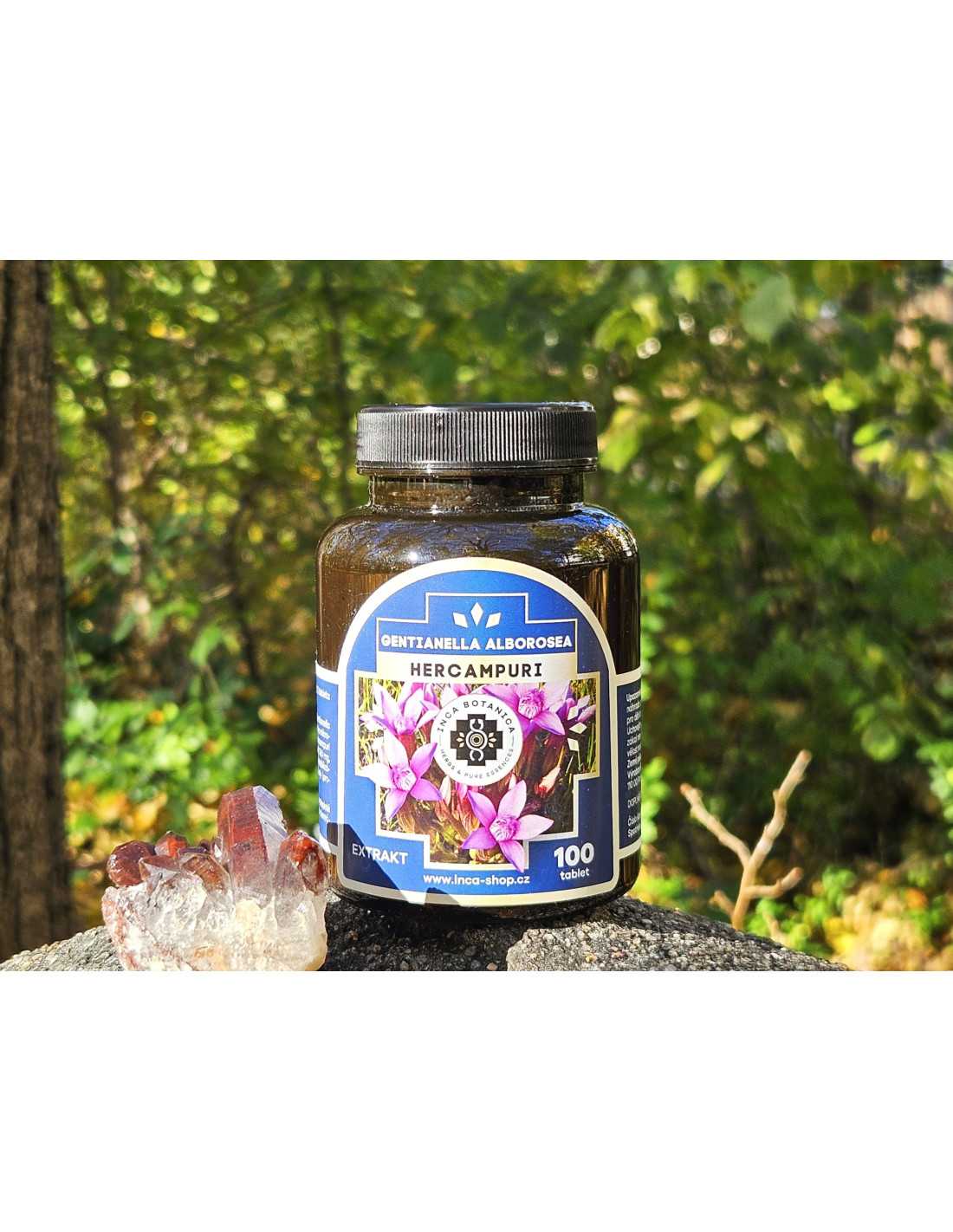 Každá tableta obsahuje standardizovaný extrakt z rostliny Hercampuri (Gentianella alborosea), bez konzervantů a zbytečných aditiv. Produkt je vyroben v České republice ze suroviny pocházející z Peru.